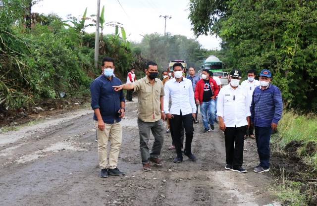Sebelumnya juga, Bupati meninjau badan jalan yang nyaris putus akibat abrasi diperkirakan sepanjang 60-70 meter di wilayah Nagori Raya Usang.