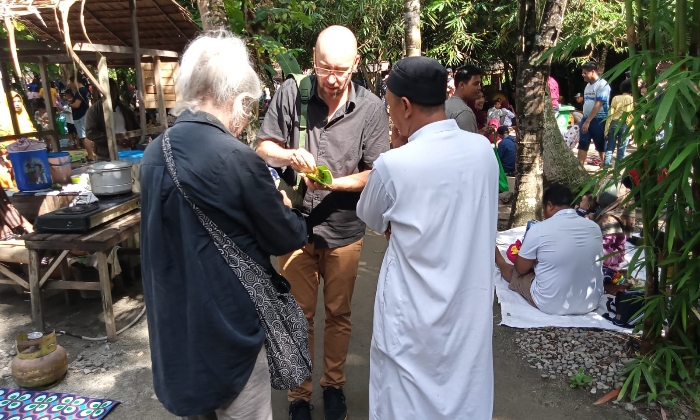 Peter dan Jacqueline bersama Dedi berhenti di salah satu stand, langsung mencicipi kue tradisional khas Aceh.