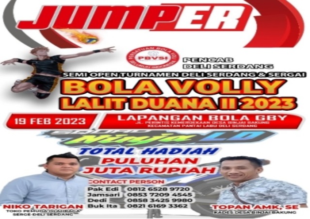 “Panitia mengucapkan terima kasih pada Ketua PBVSI Deli Serdang, Muhammad Kariman yang telah memberikan restu turnamen itu dan Kepala Desa (Kades) Binjai Bakung, Topan Amk selaku tuan rumah,” tambah Fery.