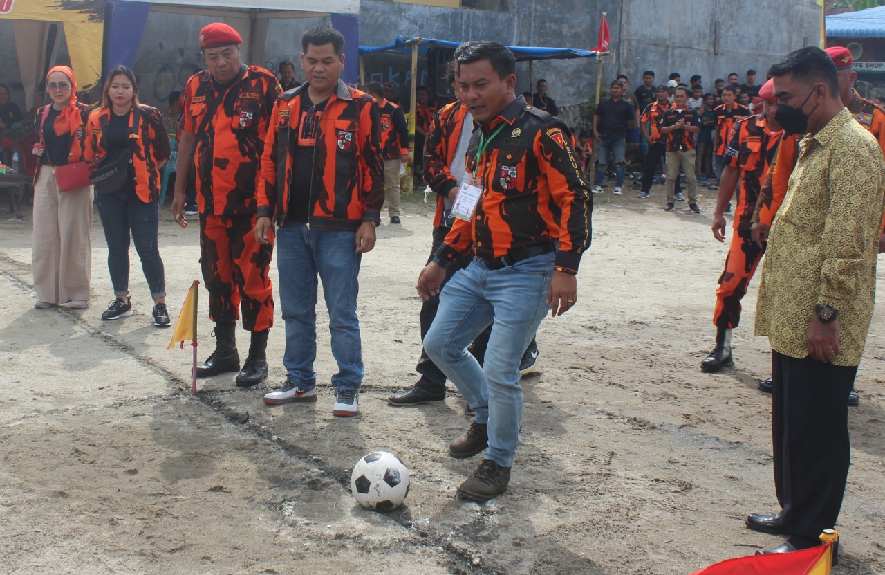Andika Prayogi Sinaga selaku Ketua PAC PP Siantar Barat saat menerima tendangan bola.