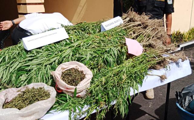 Video Buah Manis Kinerja Pengintaian Ladang Ganja Akhirnya Diungkap Polres Samosir 22 April 2022 Berbagi di Facebook Tweet di Twitter Barang bukti pohon ganja yang diamankan pihak Polres Samosir.
