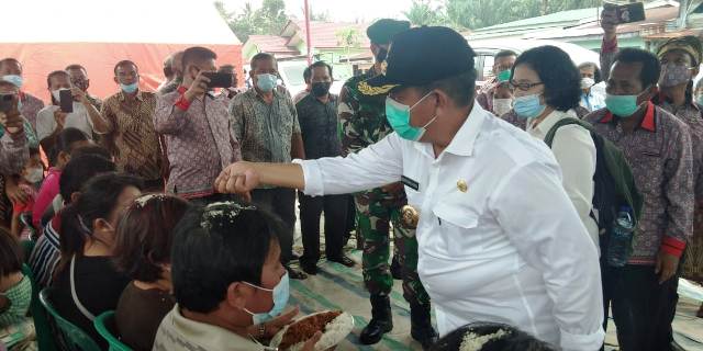 Bupati Simalungun, Radiapoh Hasiholan Sinaga memberikan boras sipir ni tondi pada korban kebakaran di Nagori Pokan Baru.