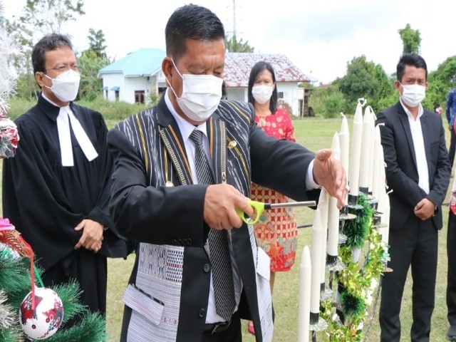 Bupati, Radiapoh Hasiholan Sinaga menyalakan lilin pada perayaan Natal bersama tahun 2021 Pemkab Simalungun bersama masyarakat.
