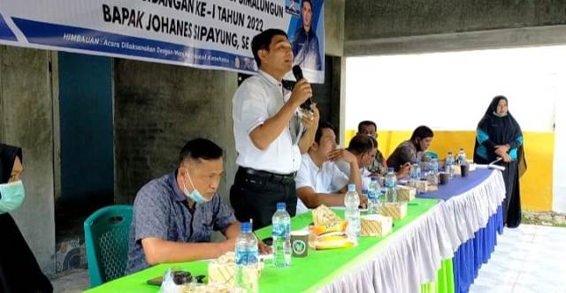 Ketua Fraksi Demokrat DPRD Simalungun, Johanes Sipayung saat memberi janji kepada konstituen.