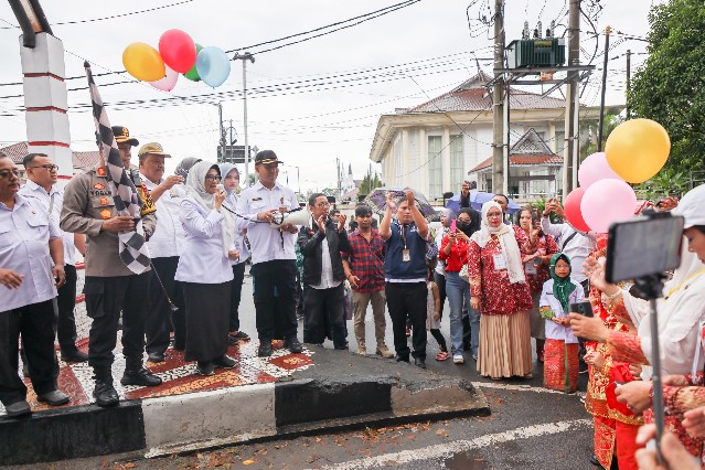 dr Susanti didampingi Kapolres Pematang Siantar AKBP Yogen Heroes Baruno SH SIK melepas peserta pawai dari simpang Jalan H Adam Malik-Jalan Sudirman, yang dimeriahkan pelepasan balon ke udara. Selanjutnya, di bawah rintik hujan, murid-murid dari TK se-Kota Pematang Siantar berjalan dengan semangat dari Jalan H Adam Malik menuju Jalan Merdeka, Jalan Diponegoro, Jalan Sutomo, Jalan Sudirman, dan kembali ke Jalan Adam Malik.
