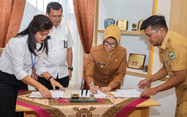 Kegiatan dilanjutkan dengan penandatanganan serah terima aset oleh Susanti dan Syafriel.