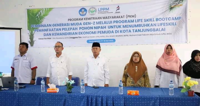 Tanjungbalai, Lintangnews.com | Wali Kota, Waris Tholib membuka kegiatan pembinaan generasi muda Gen-Z melalui program Life Skill Bootcamp pemanfaatan pelepah pohon nipah untuk menumbuhkan life skill dan kemandirian ekonomi pemuda di Kota Tanjungbalai.